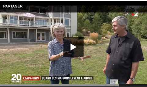 Three Seattle houses are moved across Puget Sound, as reported by FranceInfo TV. One house was a donation to House Donation Group.