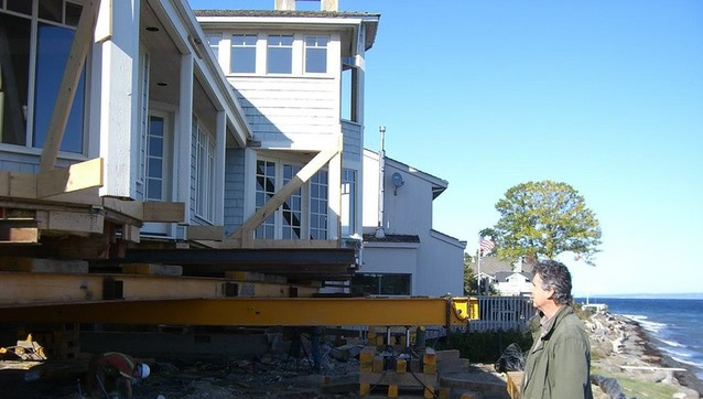 This house was moved just 3 miles, but because of its size, it had to move by water. The TV show "Monster Moves" had a film crew there to record the event. The house was moved before the donation program was initiated, and is an example of a larger structure being moved by Nickel Bros.